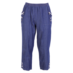 BS Jeans Capri dame knickers. Knickersene har knap- og lynlåslukning, samt mulighed for bælte. Knickersene har 3 lommer foran, samt 2 baglommer..