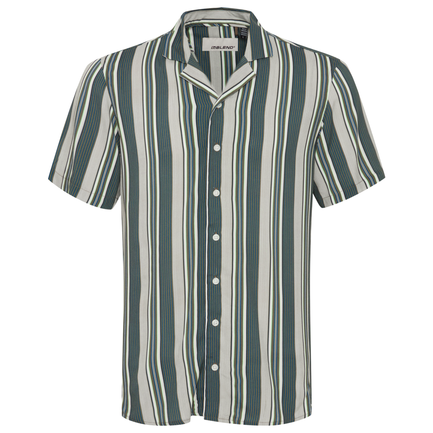 Blend herre skjorte i let og luftig viskose kvalitet. Med korte ærmer, all-over stribet print, gennemgående knaplukning samt krave..