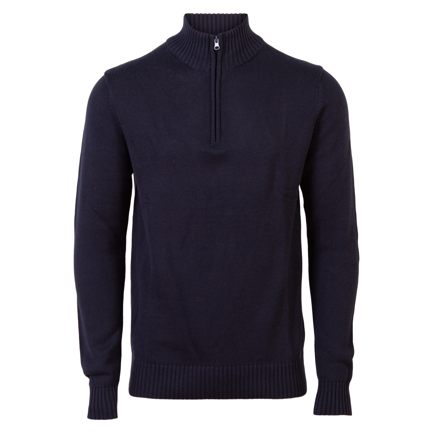 Carnét herre strik med lange ærmer, høj rib hals med lynlås samt ribkant ved ærmer og bund..