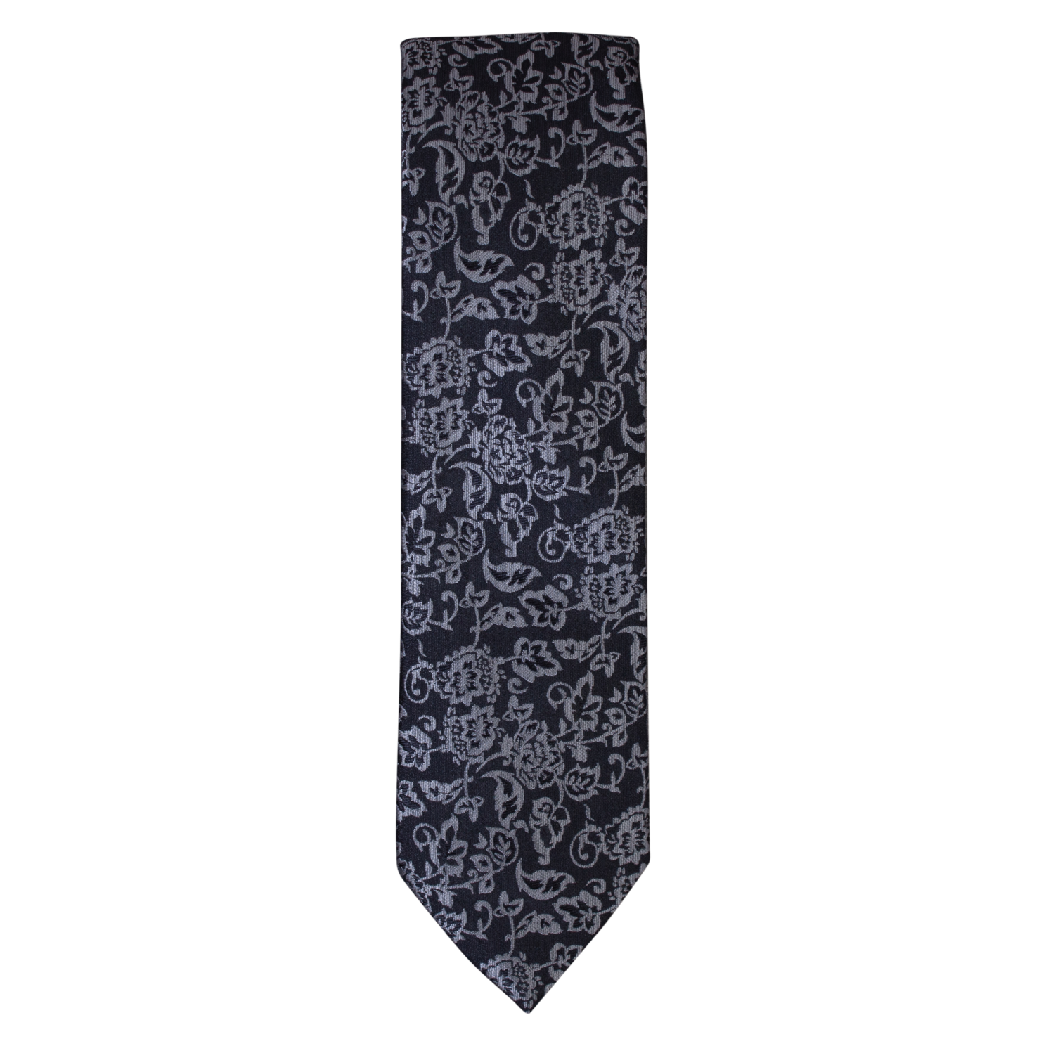 Carnét slips. Klassisk slips i sort med sølvfarvet mønstre. Bredde: 7 cm. Totallængde: 149 cm..