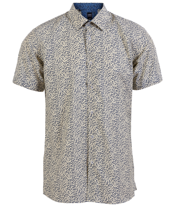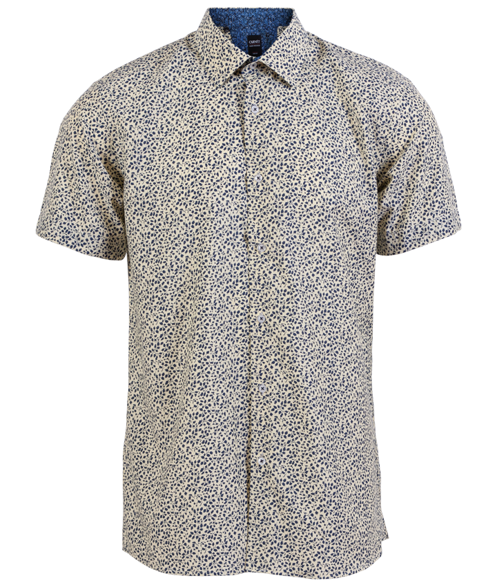 Carnét Nicholes herre kortærmet skjorte. Cool kortærmet skjorte med all-over print. Skjorten har gennemgående knaplukning samt almindelige krave..