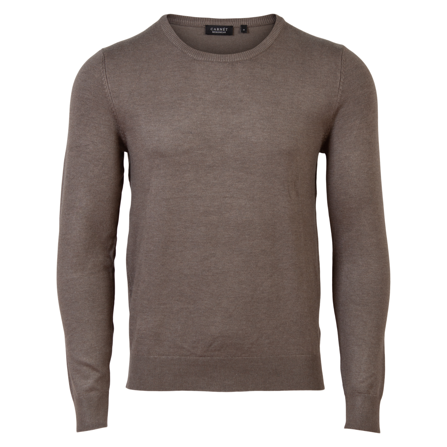 Carnét herre tynd striktrøje med rund halsudskæring. Strikken har lange ærmer med ribkant samt ribkant i bunden..