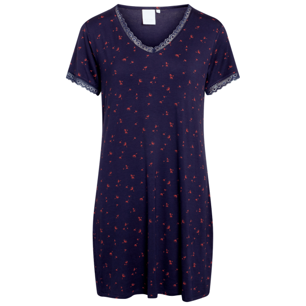 CCDK Jacqueline dame natkjole.Natkjolen har gennemgående mønster, samt blonde detaljer om halsen og om ærmerne..