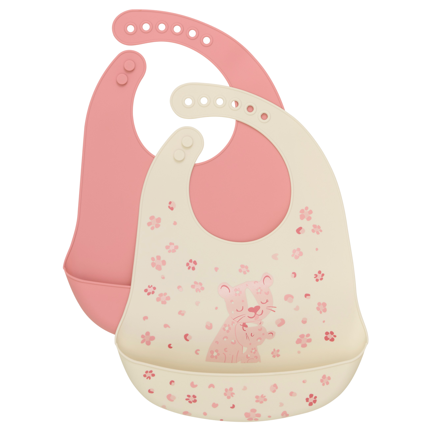 CeLaVi silikone hagesmæk 2-pak. Virkelig smart hagesmække lavet af 100% BPA free silikone så de er lette at rengøre, herudover kan de også tåle at komme i opvaskemaskinen. I nakken er der flere forskellige huller, så hagesmækken nemt kan justeres i størr.