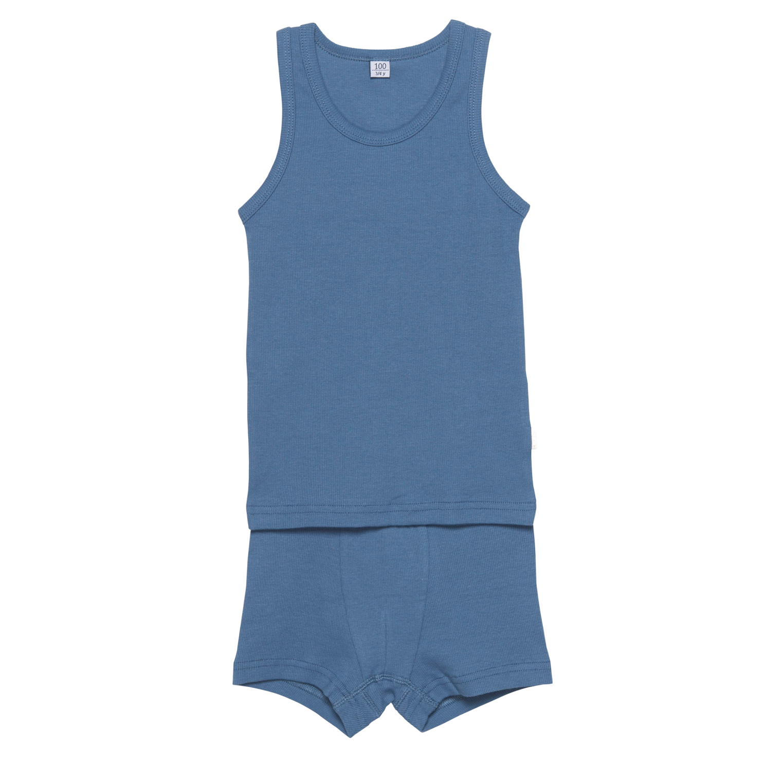 Undertøjssæt bestående af boxer shorts og en tanktop. Tøjet er i rib og lavet med en masse stretch. Boxer shortsene har elastik i taljen..