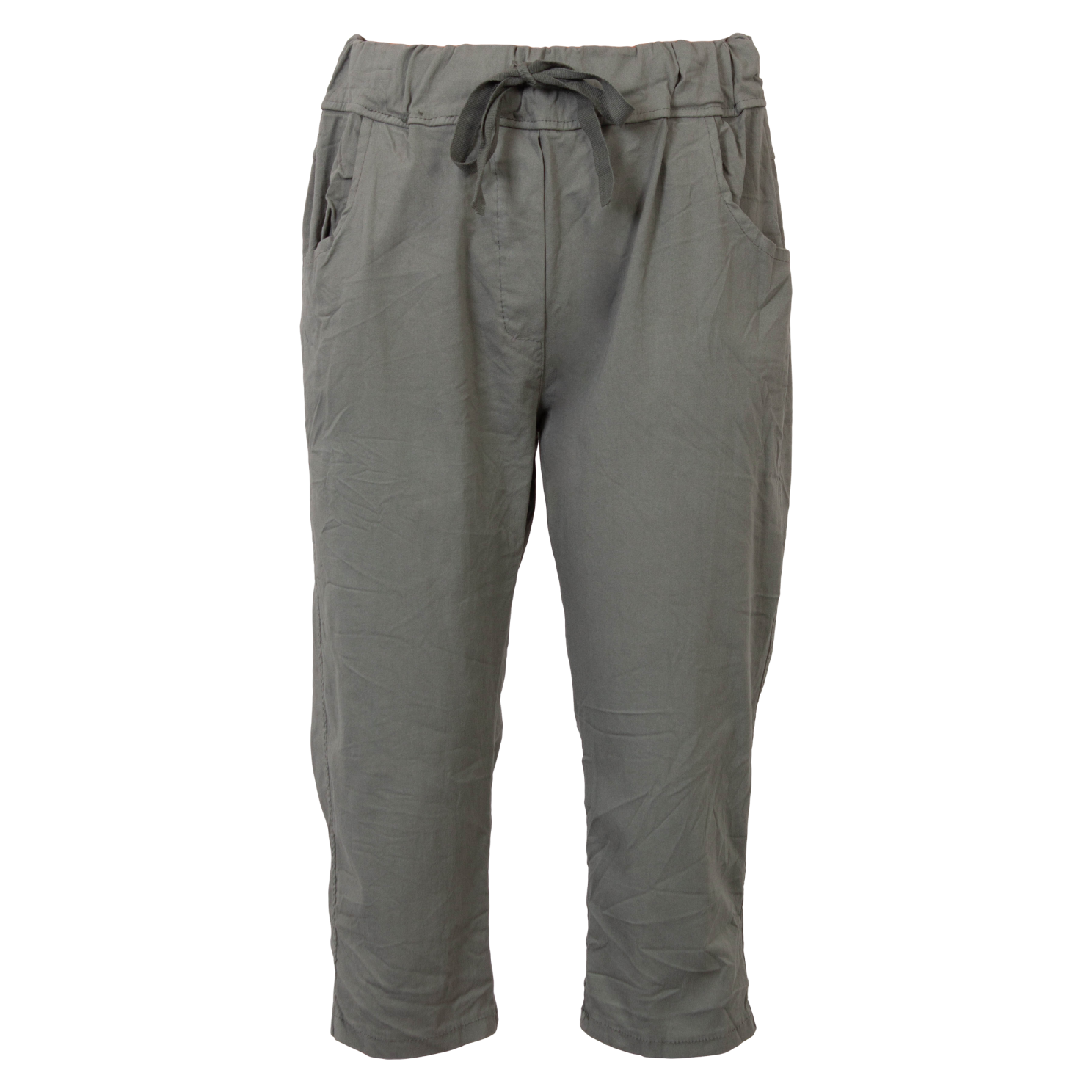 Dame knickers med elastik og bindebånd i linningen. Bukserne har 2 sidelommer samt 2 lommer bagpå..