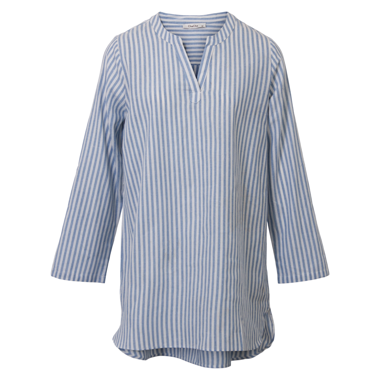 Dame tunika med gennemgående striber. Tunikaen har v-hals og justérbare ærmer..