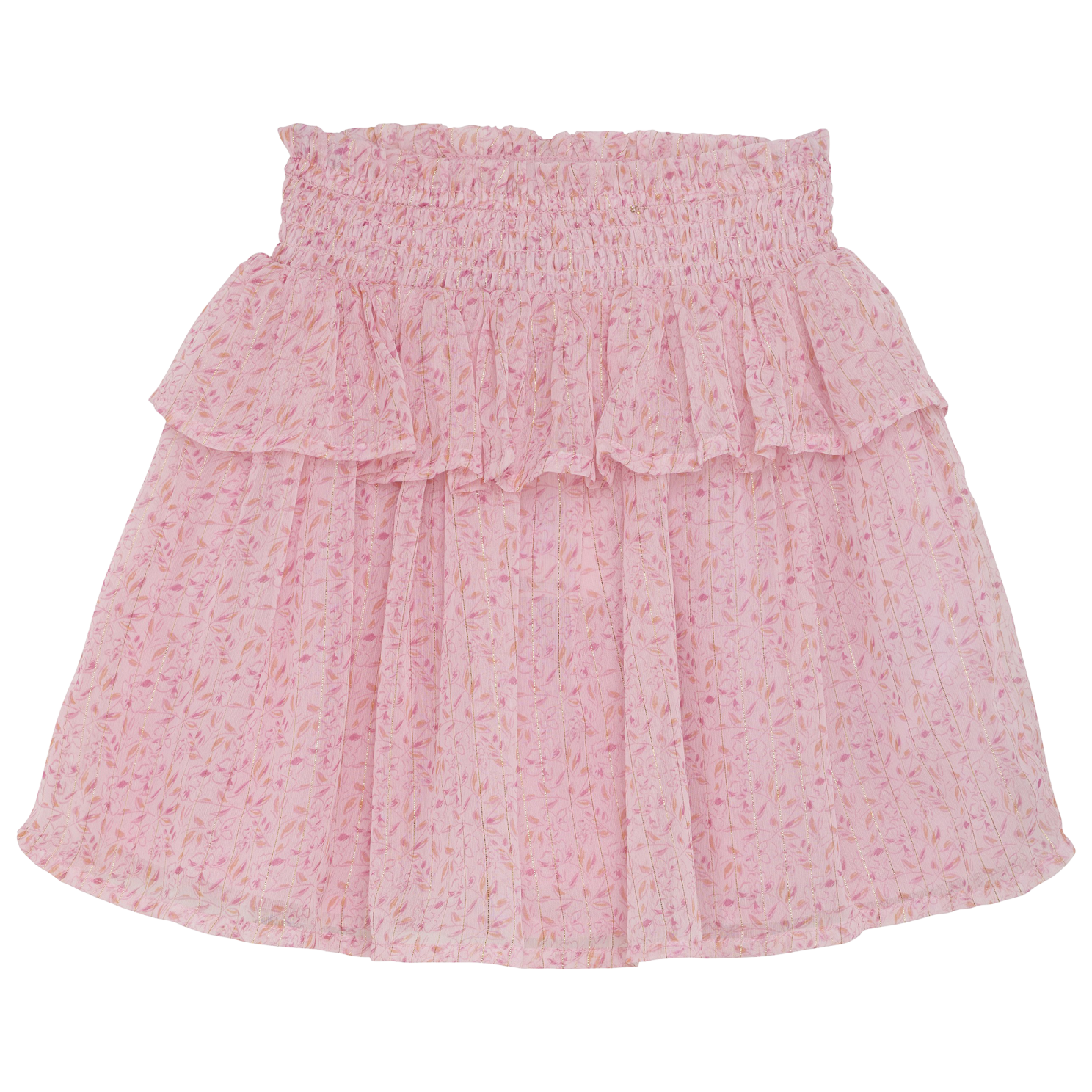 Creamie nederdel med blomstret mønster og metalliske lurex tråde. Nederdelen har flotte flæser og smockdetalje i taljen, der gør den behagelig at bære..