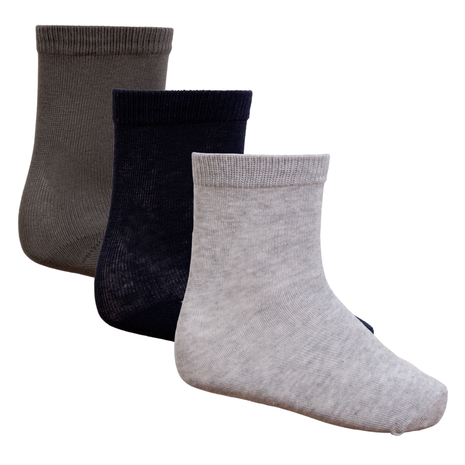 3-pak strømper til med non-slip under foden, som gør at barnet ikke glider. Derudover har strømperne plastikkant ved anklen..
