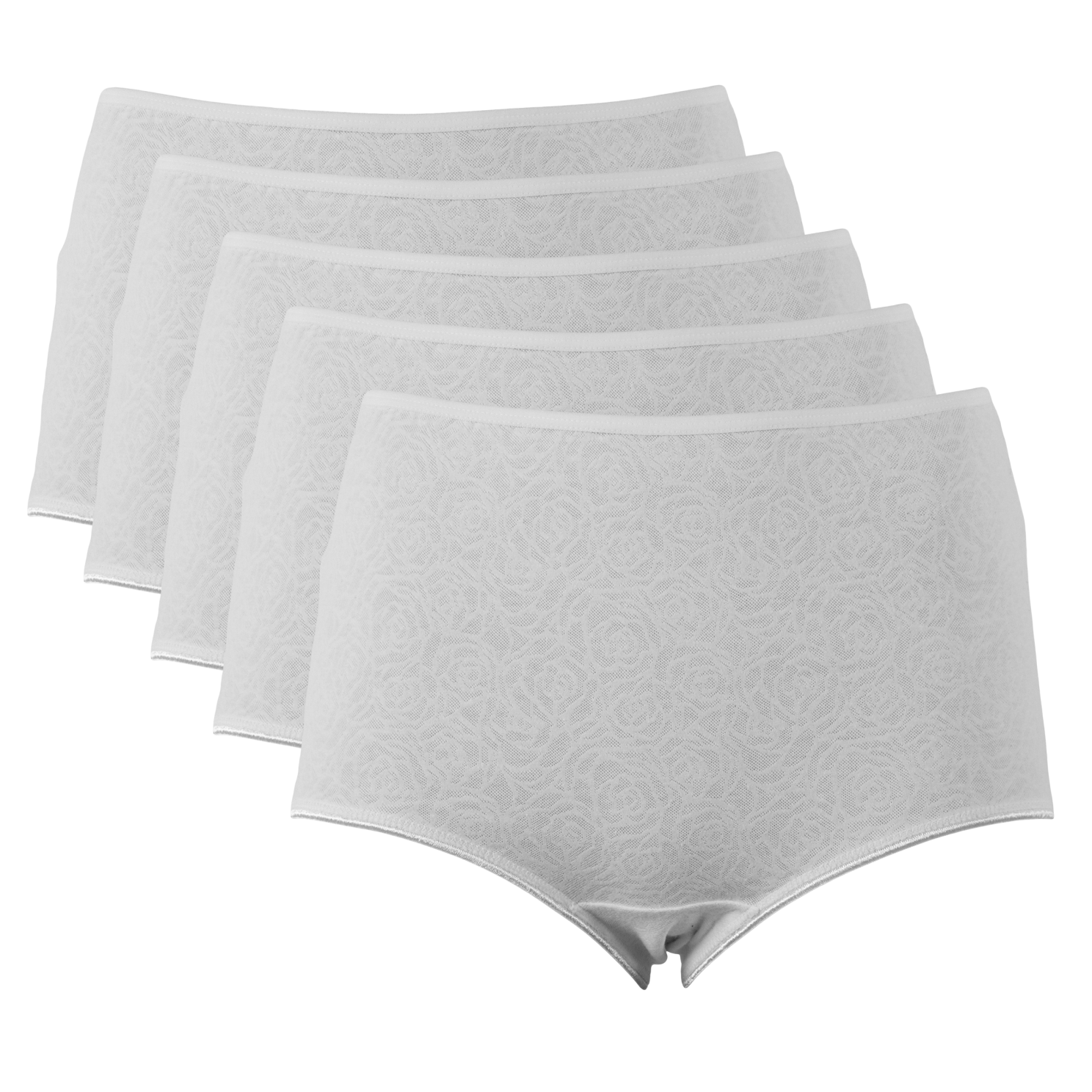 Crossbow dame 5-pak trusser i bomuld med blomster struktur og med elastik i taljen. De flotte dametrusser giver god støtte til mave og til bagdelen, og med den fine blomsterstruktur får du nogle virkeligt flotte og elegante dametrusser med maksimal komfor.