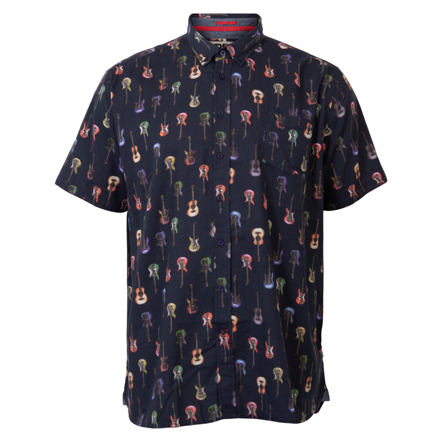 Plus size kortærmet skjorte med all-over print af guitar grafik..