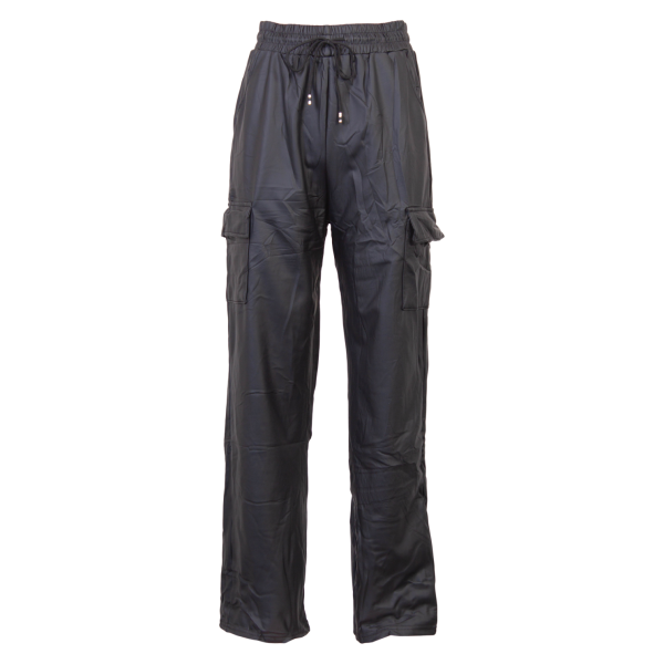 PU cargobukser med et trendy design. Bukserne er udstyret med praktiske sidelommer med flapdetaljer, elastik i taljen samt med justerbar snøre..