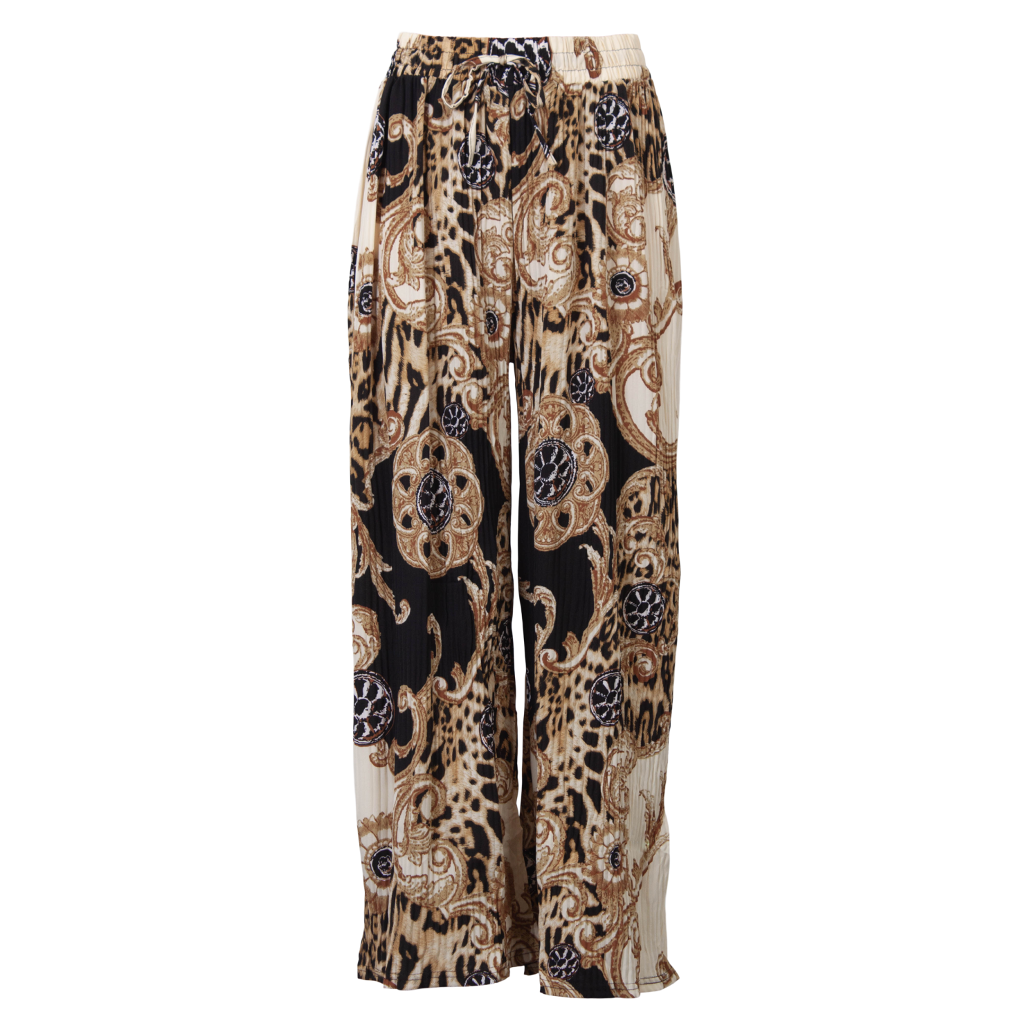 Lange bukser i plisse med all-over-print samt elastik og bindebånd i taljen..