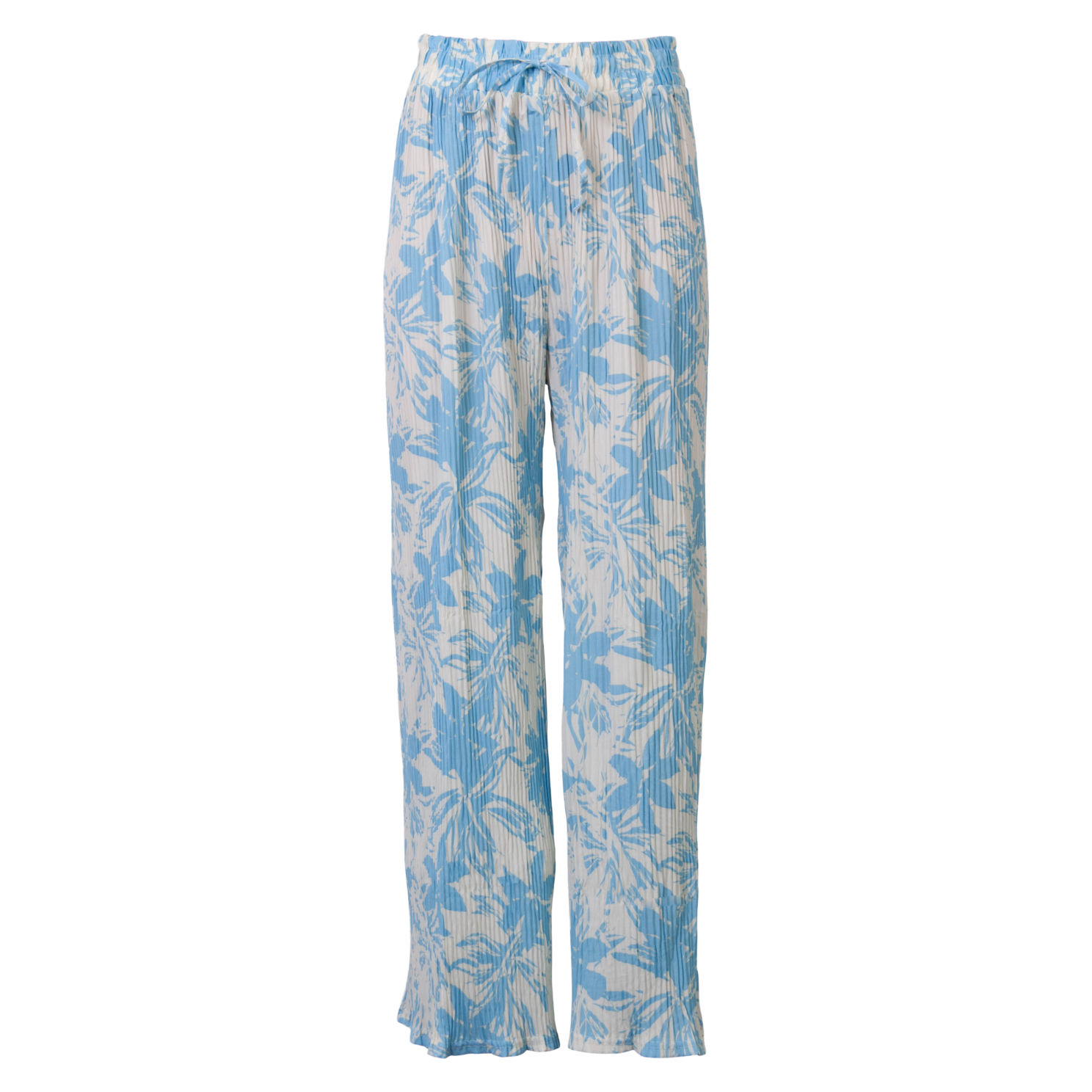 Lange bukser i plisse med all-over-print samt elastik og bindebånd i taljen..