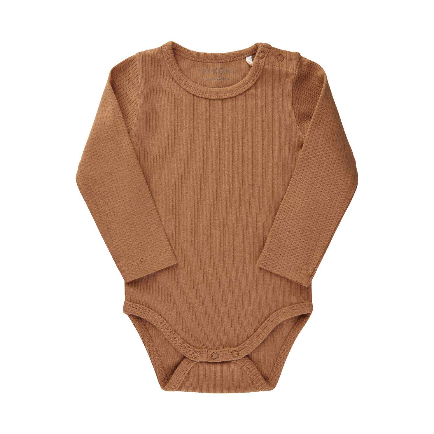 Bodystocking med lange ærmer i rib-design. Denne bodystocking har to trykknapper ved halsåbningen for nem af – og påklædning, samt 3 trykknapper ved skridtet, så det er let at skifte ble. Bodystockingen er lavet i økologisk bomuld, som er GOTS certificere.