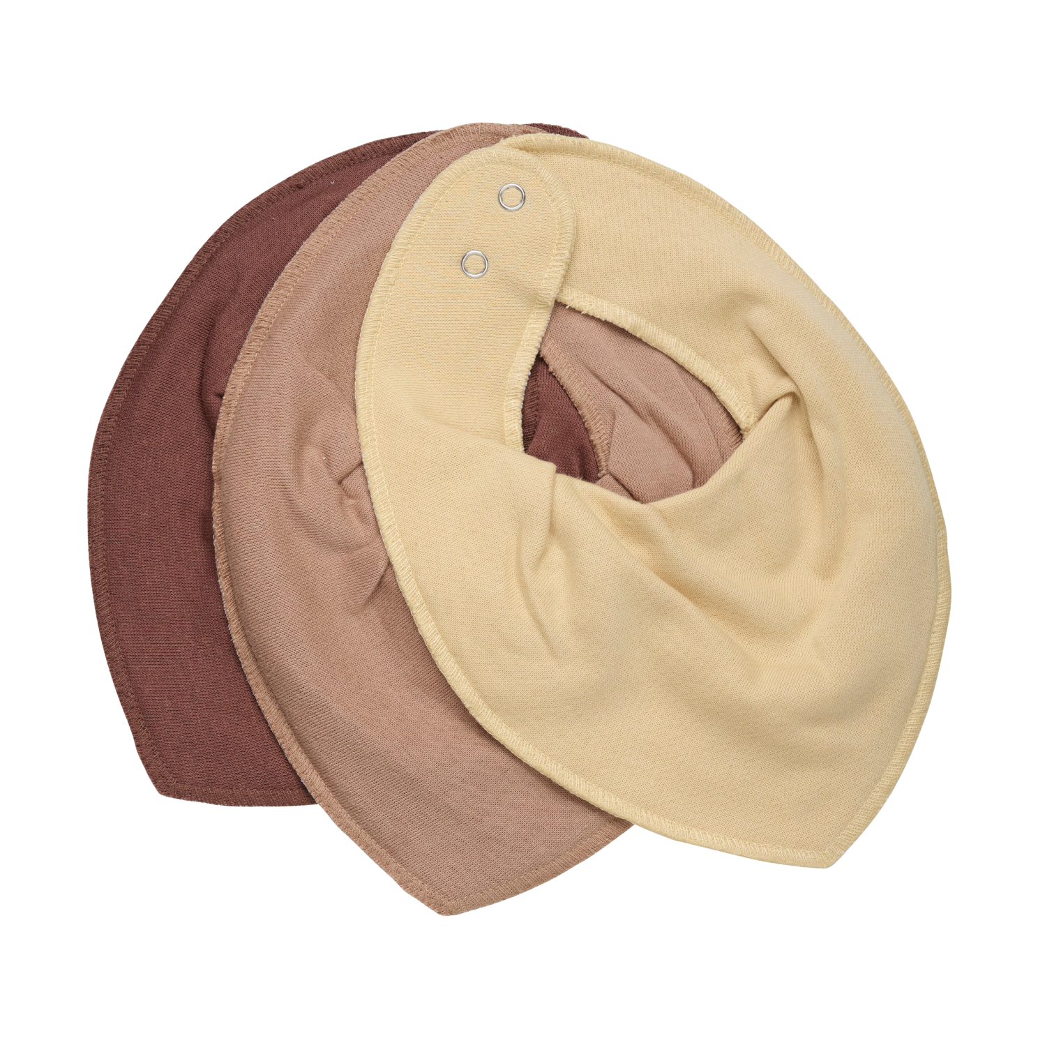 3-pack savlesmække i 3 forskellige farver. savlesmækkene har en spids form, og lukkes i nakken ved hjælp af tryknap med to indstillinger..