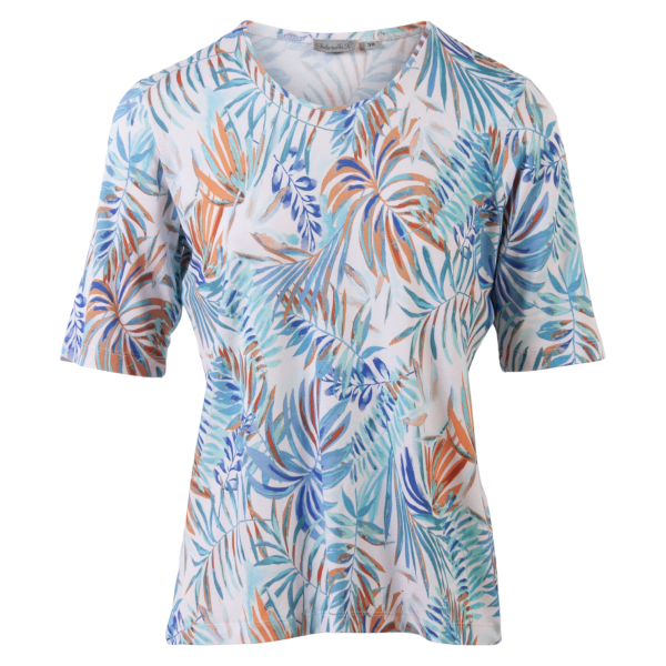 Gabriella K. dame bluse med all-over print og rund halsudskæring..