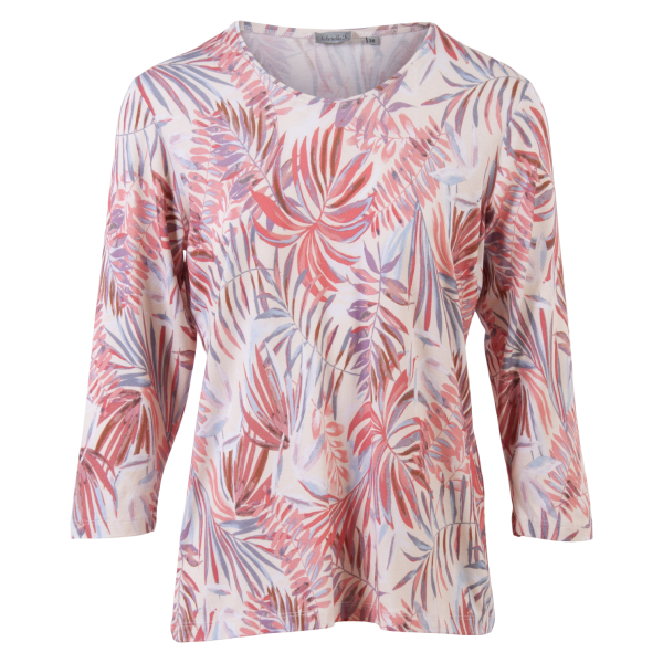 Gabriella K. dame bluse med 3/4 ærmer, all-over print og rund halsudskæring..