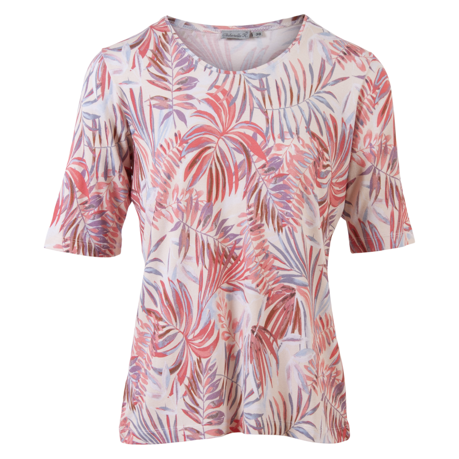 Gabriella K. dame bluse med all-over print og rund halsudskæring..