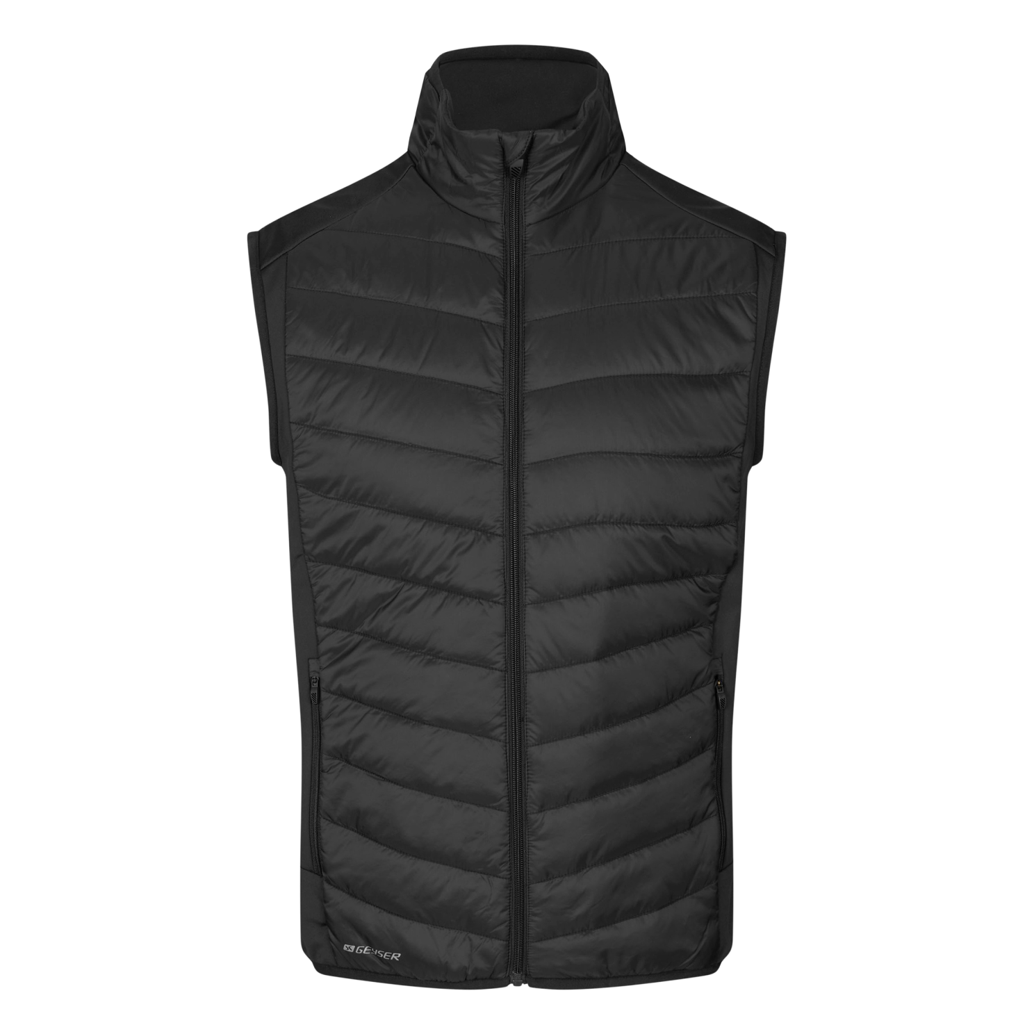 Sporty komfortabel hybrid vest. Front og bag i let quiltet vindtæt kvalitet. Vattering er THERMOLITE®T-DOWN lavet af recycled plastikflasker. Vesten er kombineret med en lækker blød 4-vejs stretch kvalitet, for optimale komfort og bevægelsesfrihed. YKK l.