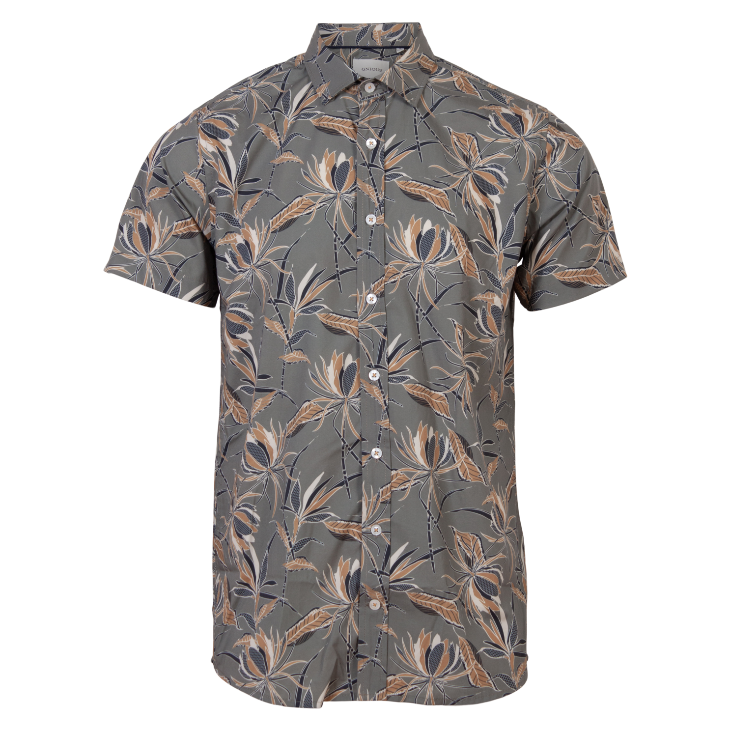 Gnious Paolo herre skjorte. Skjorten har gennemgående knappelukning, samt krave om halsen. Skjorten er kortærmet og har gennemgående motiv..