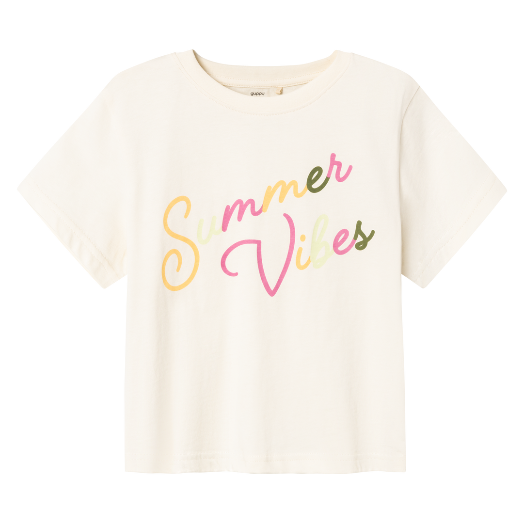 Guppy t-shirt – kort model med løs pasform. Tekst på fronten..
