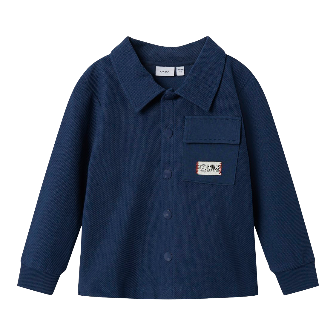 Guppy drenge overshirt skjorte i et tidløst og afslappet design. Den flotte skjorte har gennemgående knaplukning og en brystomme med et lille badge med et print af et næsehorn. Skjorten har ribkant ved håndleddene. Der er fuld fokus på komforten i denne b.