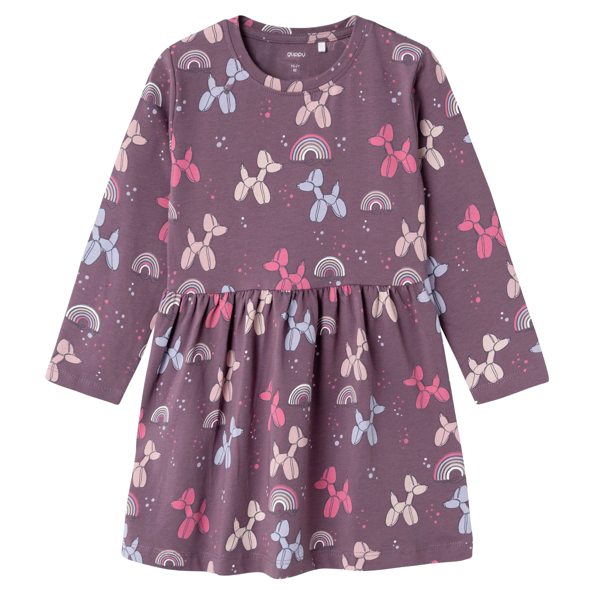 Guppy pige kjole med all-over print. Kjolen har rund hals og lange ærmer..