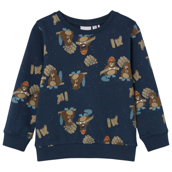 Børne sweatshirt med all over print, rund halsudskæring samt ribkant i hals, ærmer og i bunden af trøjen..
