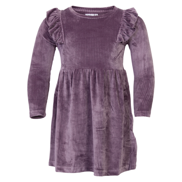 Guppy langærmet kjole i velour fløjl look. Kjolen har flæser på fronten i overdelen samt en rund halsudskæring..