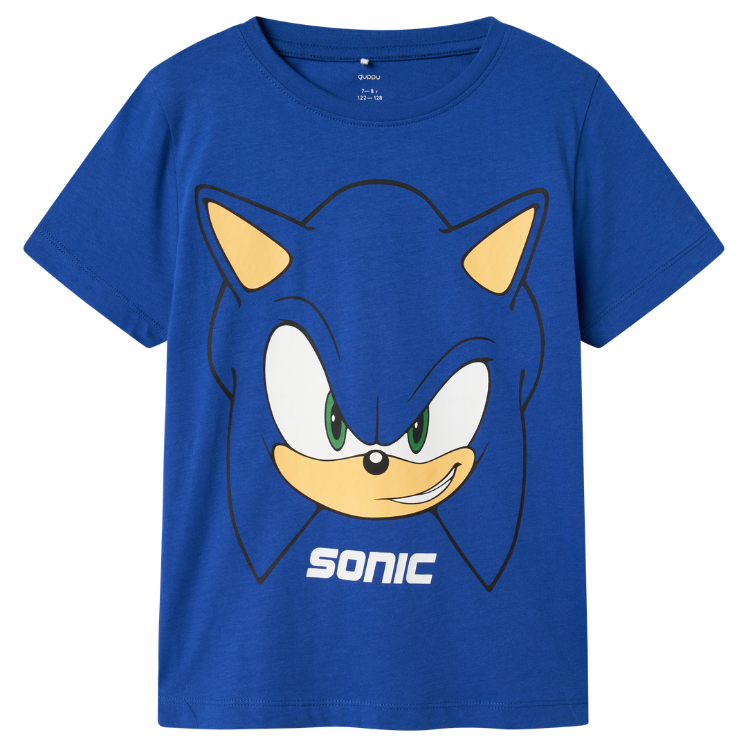 Guppy t-shirt med Sonic print på fronten. T-shirten har klassisk rund halsudskæring samt korte ærmer..
