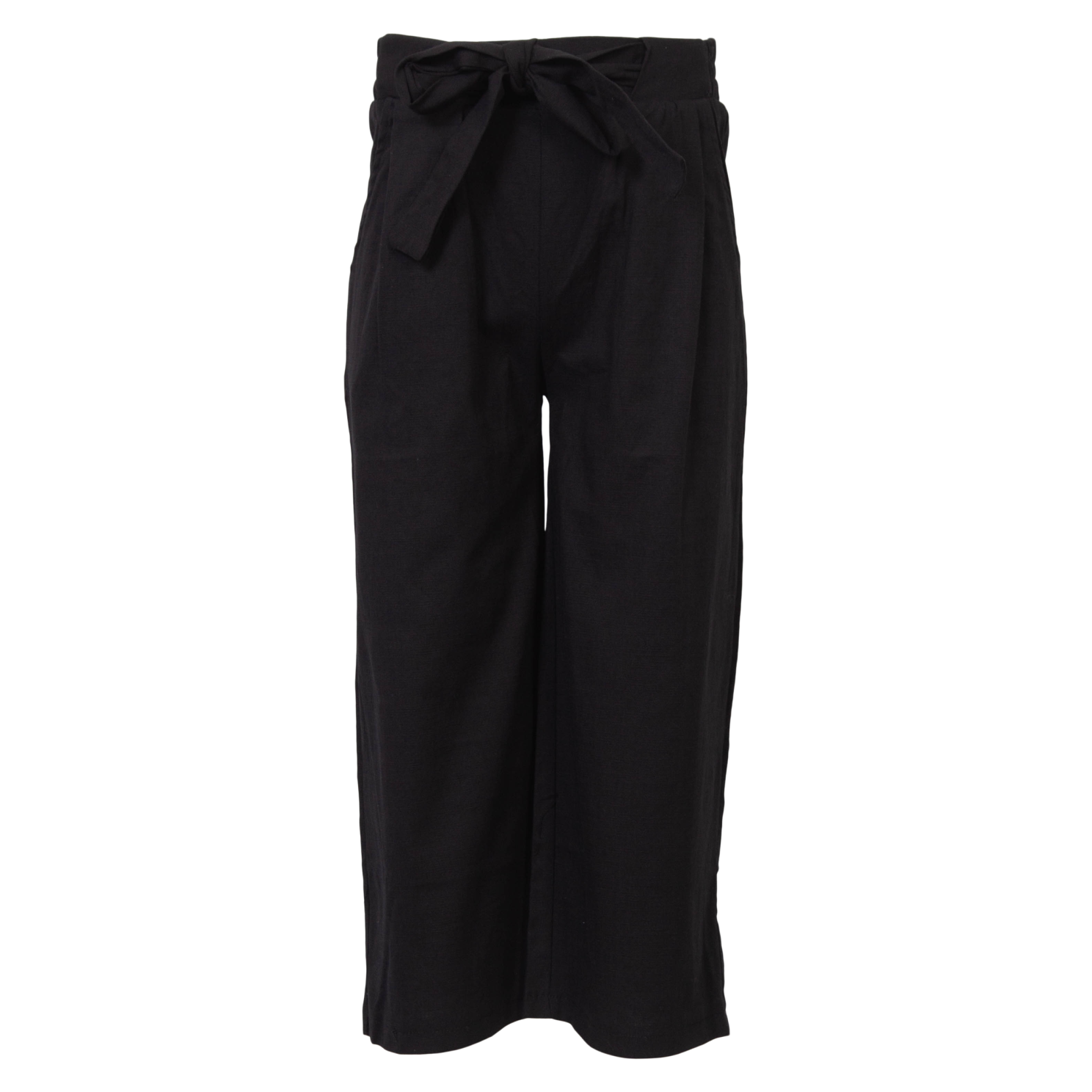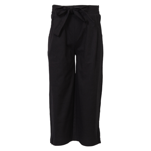 Løse pige bukser med lommer samt elastik og bindebånd i taljen..