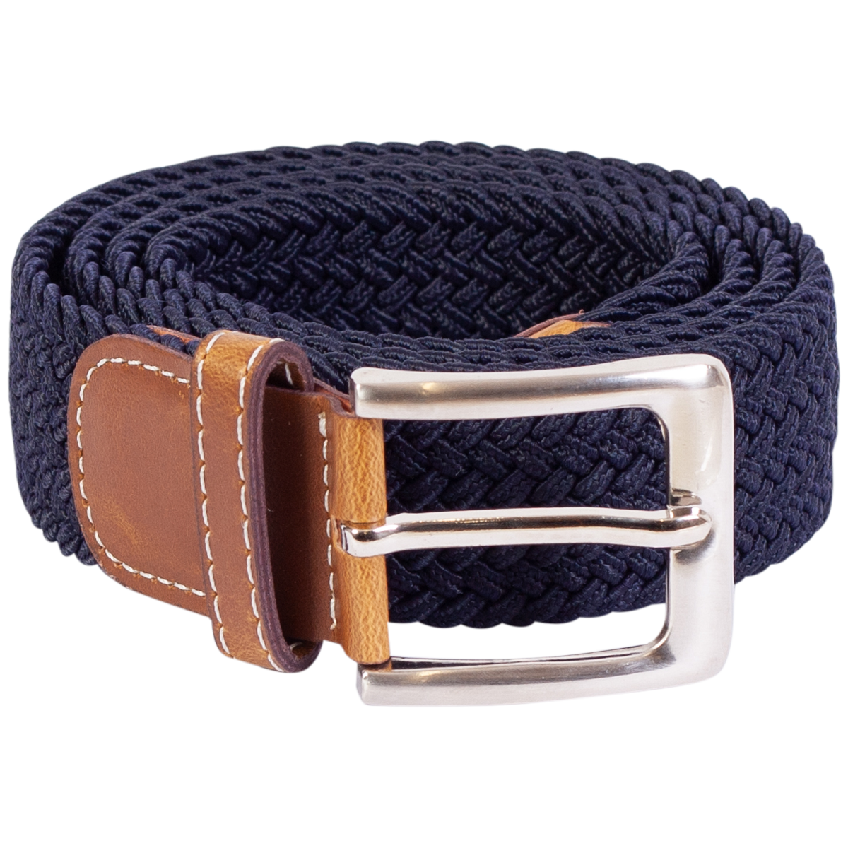 Flettet herre bælte. Elastisk bælte med læderbesætning lavet af spalt læder belagt med PU. Bæltet er 3,5 cm bredt og kan spændes hvor som helst på bæltet..