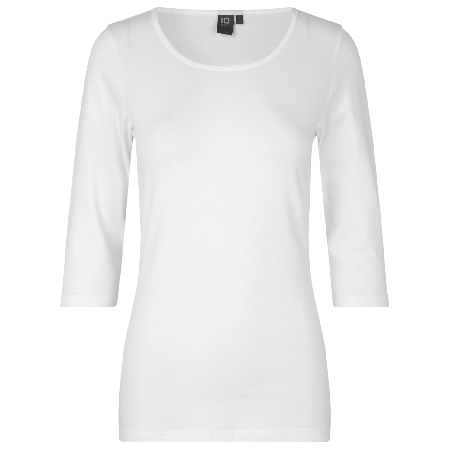 ID t-shirt i behagelig bomuldskvalitet med stretch, ¾ ærmer og rund hals. Smal ribkant i hals og ærmegab. T-shirten har tætsiddende model..