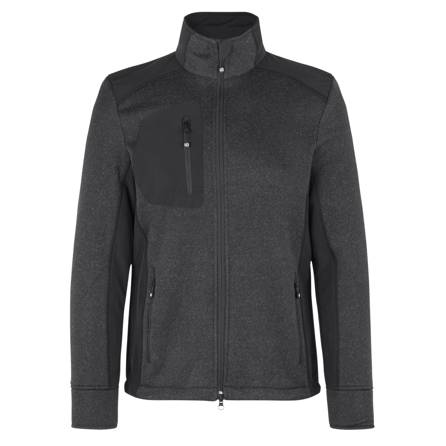 ID herre fleecetrøje. Smart strikfleece cardigan i melangefarvede garner med kontrastbesætninger. To-vejs gennemgående kvalitets lynlås. Justerbar snøre i bund. To sidelommer og en brystlomme, alle med kvalitets lynlås..