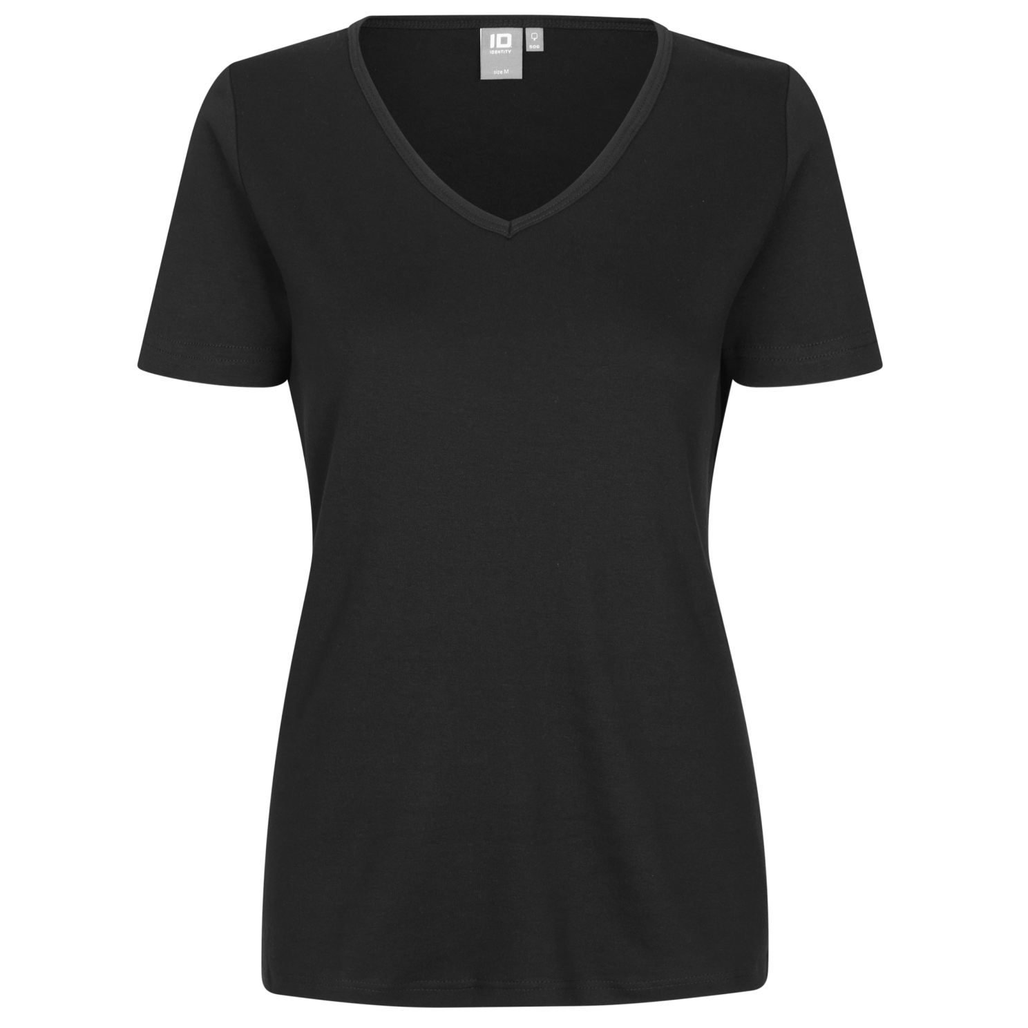 ID dame t-shirt. Kortærmet interlock T-shirt med V-hals i blød antipillingkvalitet. Let figursyet..