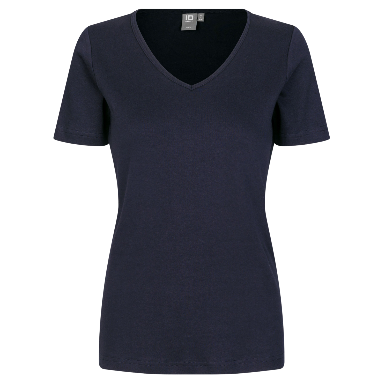 ID dame t-shirt. Kortærmet interlock T-shirt med V-hals i blød antipillingkvalitet. Let figursyet..