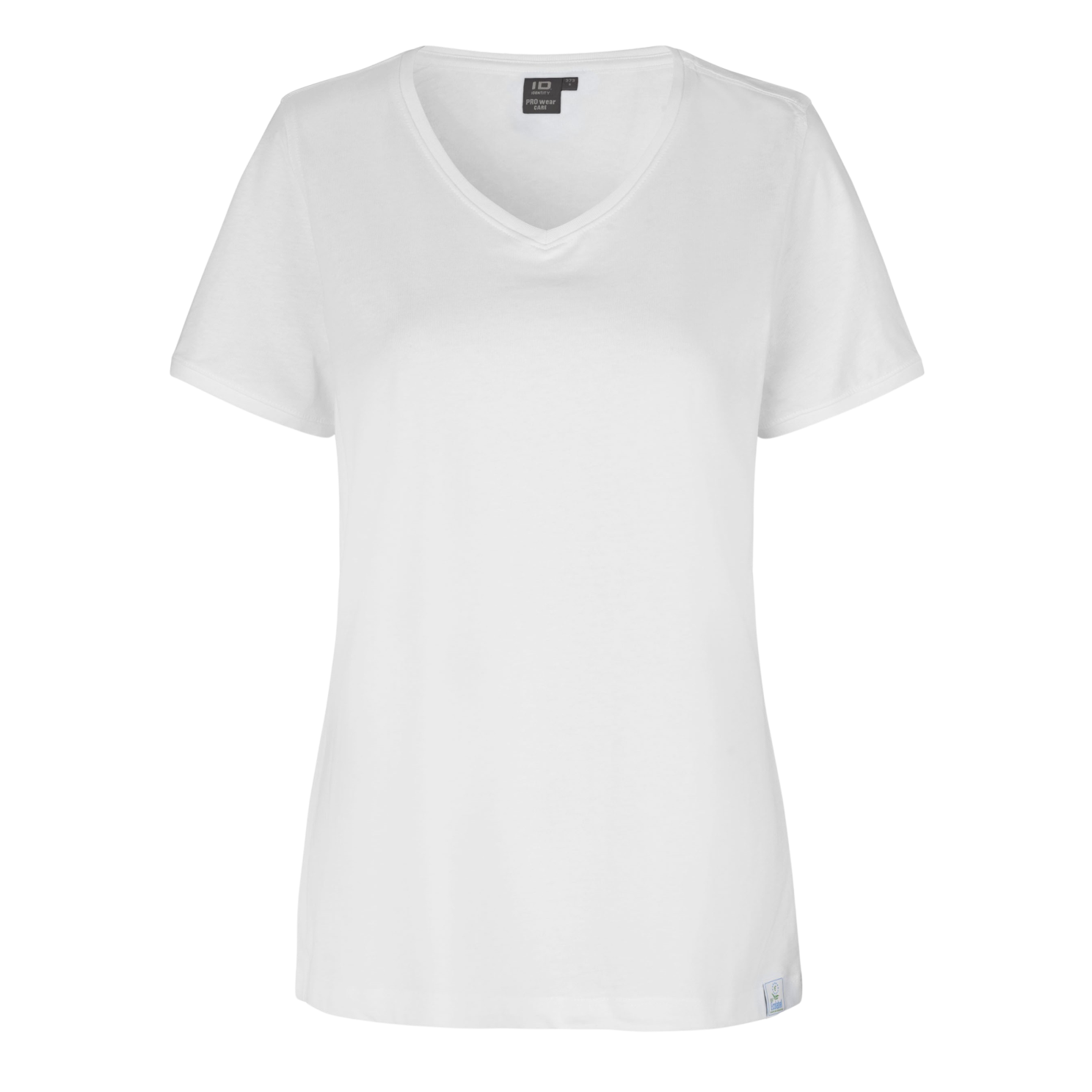 ID dame V-hals t-shirt. Smart slidstærk t-shirt med v-hals, samt hals- og ærmerib og forstærkning af nakke og skuldersøm. T-shirten har et casual design og har flot fit, uden at gå på kompromis med bevægeligheden..