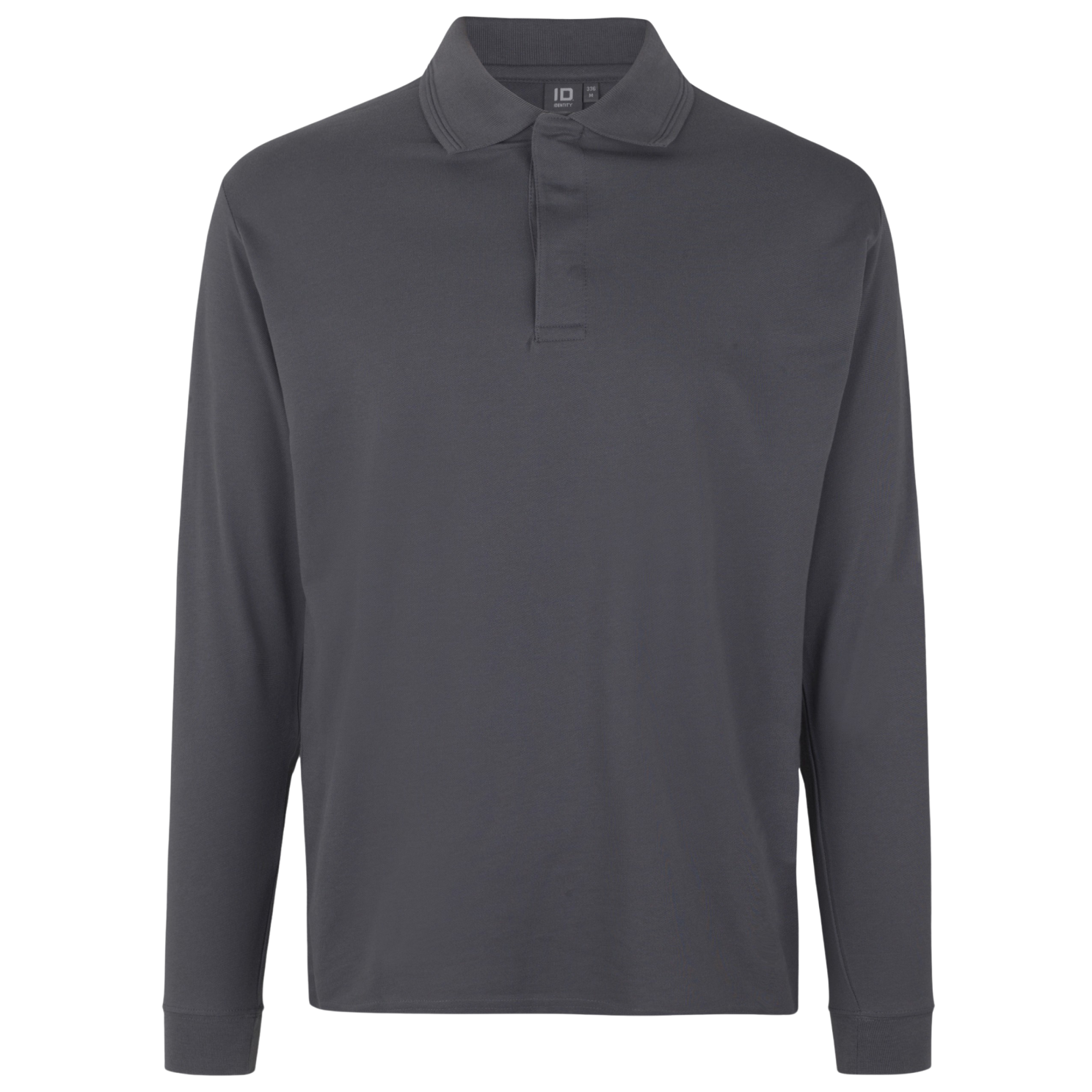 ID Pro Wear langærmet polo. Slidstærk polo trøje med lange ærmer og trykknapper i stolpen. Nakke- og skulderbånd og nakkespejl. Poloshirten har gennemgået en forkrympningsproces ved meget høje temperaturer, både før og efter indfarvningen, for ekstra stab.