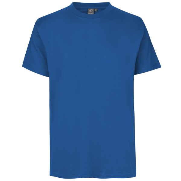 ID Pro Wear herre T-shirt. T-shirten har fire-lags halsrib, nakke- og skulderbånd og nakkespejl. Den har gennemgået en forkrympningsproces ved meget høje temperaturer, både før og efter indfarvningen, for ekstra stabilitet og lang levetid..