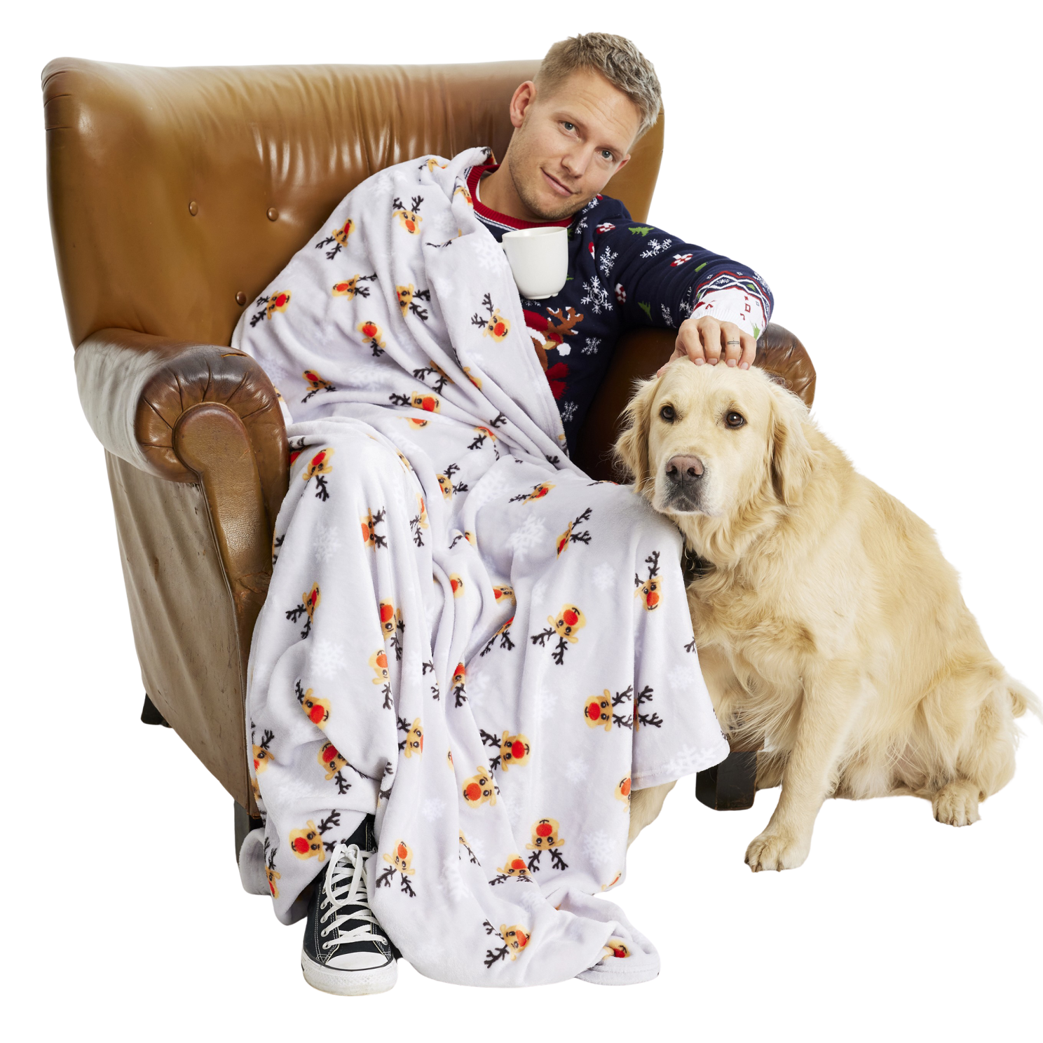 Blødt tæppe med julemotiv. Tæppet har en størrelse på 150×150 cm..
