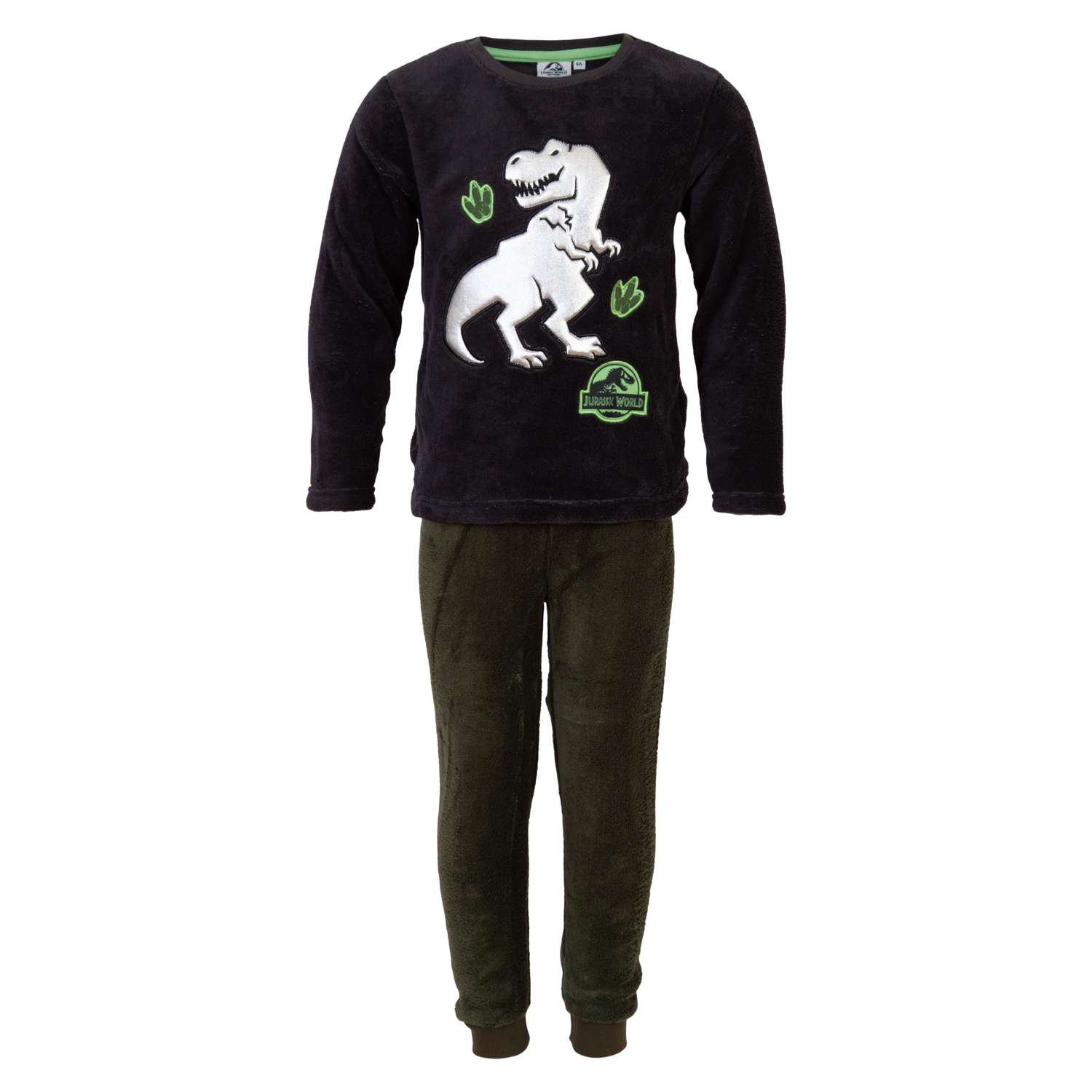 Jurassic World drenge fleecesæt.Fleecetøjet er blødt og behageligt at have på. Trøjen har rund halsudskæring med en lille ribkant om halsen. Buskerne har elastik i taljen, som gør at bukserne tilpasser sig om livet. Bukserne har en ribkant i bunden af ben.