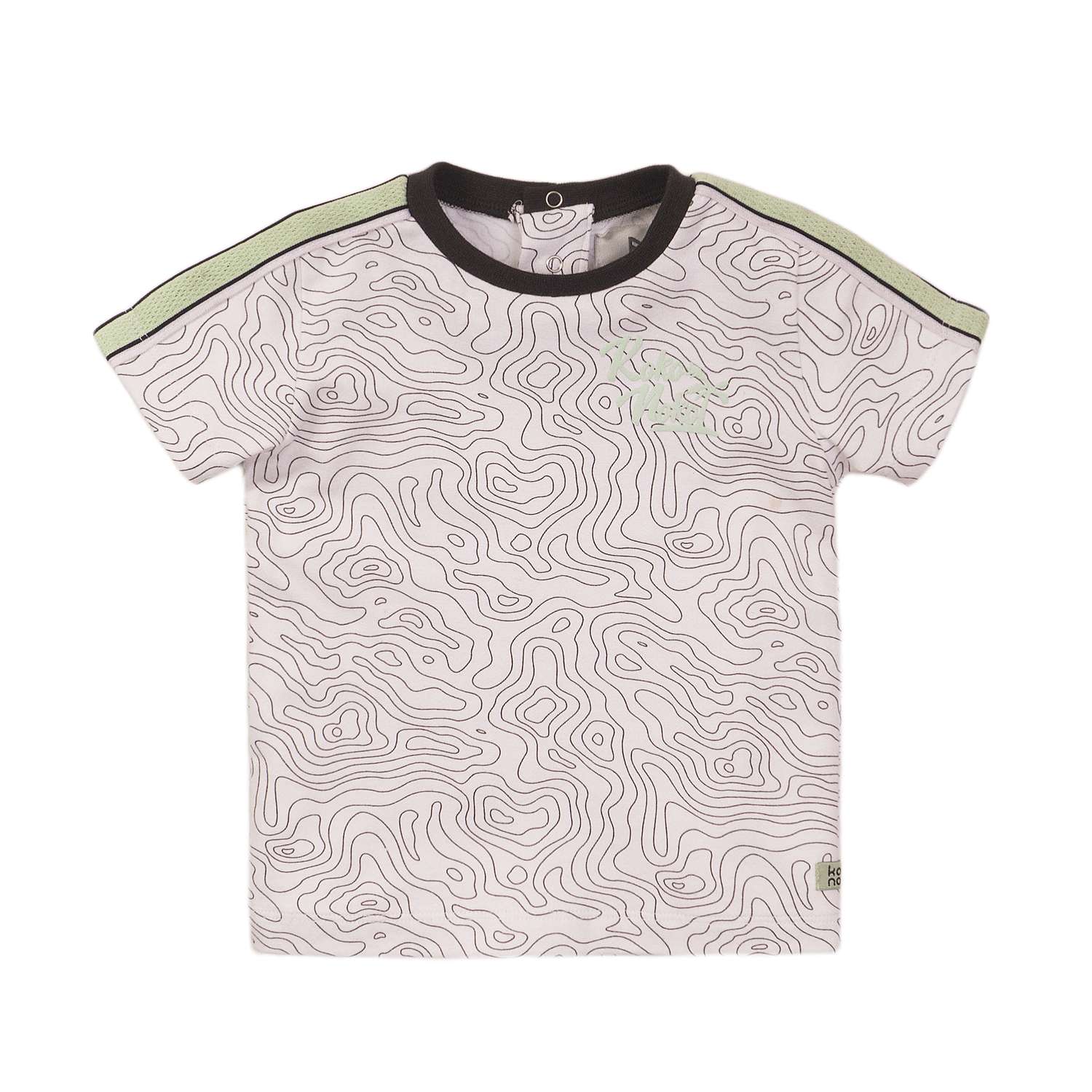 Koko Noko drenge t-shirt.Cool kortærmet t-shirt med all-over print. T-shirten har tryk på brystet samt to trykknapper i nakken.Lidt lille i størrelsen, det kunne være en god idé at gå en/to størrelser op..