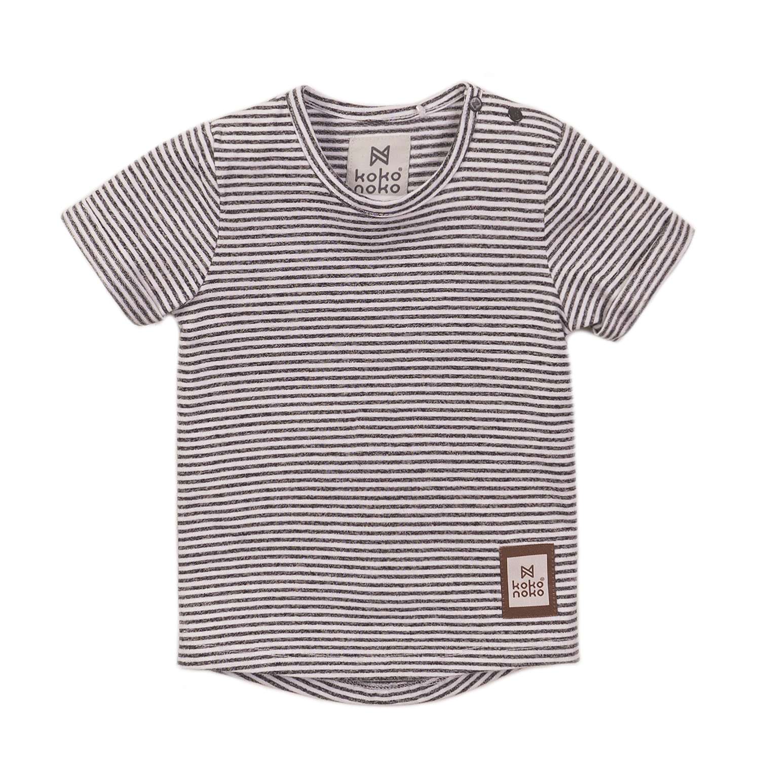 Koko Noko drenge t-shirt m. striberCool kortærmet t-shirt med striber og logo. T-shirten lukkes med to trykknapper ved den ene skulder..