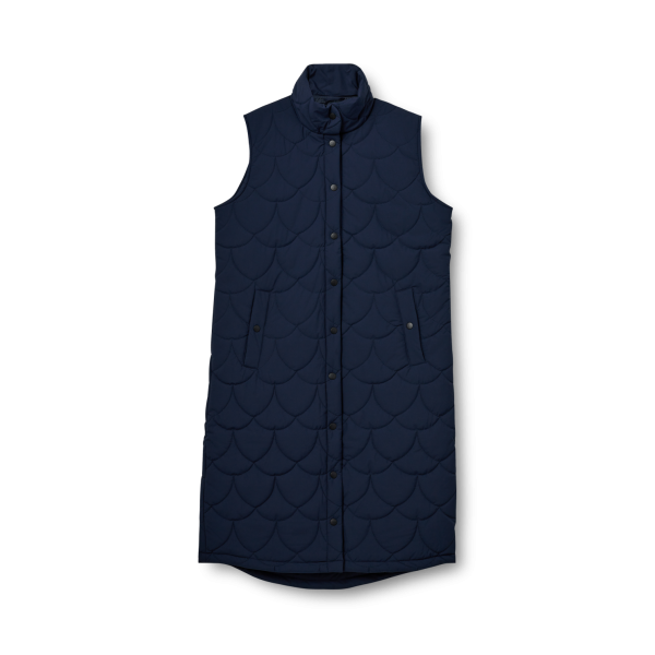 Kopenhaken lang vest i smart quilt mønster. Vesten har trykknap lukning samt lommer i siderne..