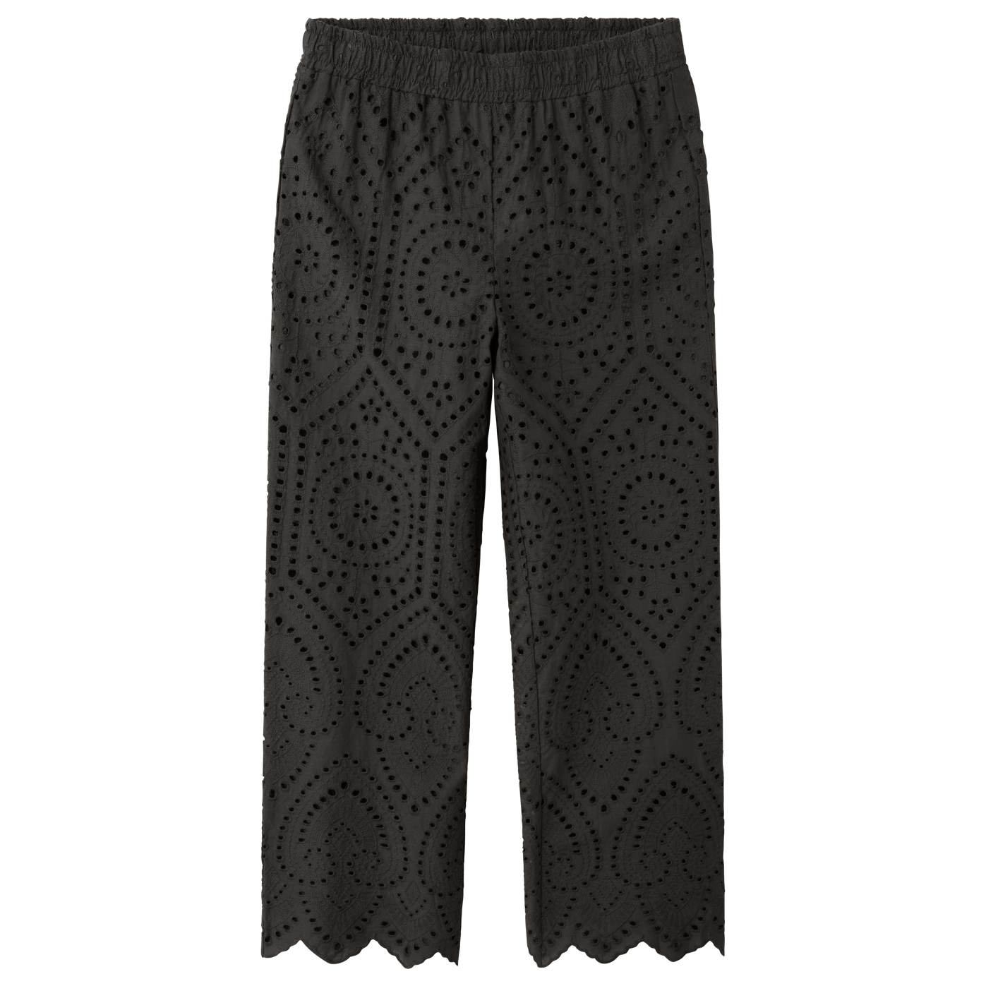 Lette og luftige vide bukser til tweens med hulmønster i det yderste lag stof. Bukserne har elastik i livet samt indvendig justerbar talje..