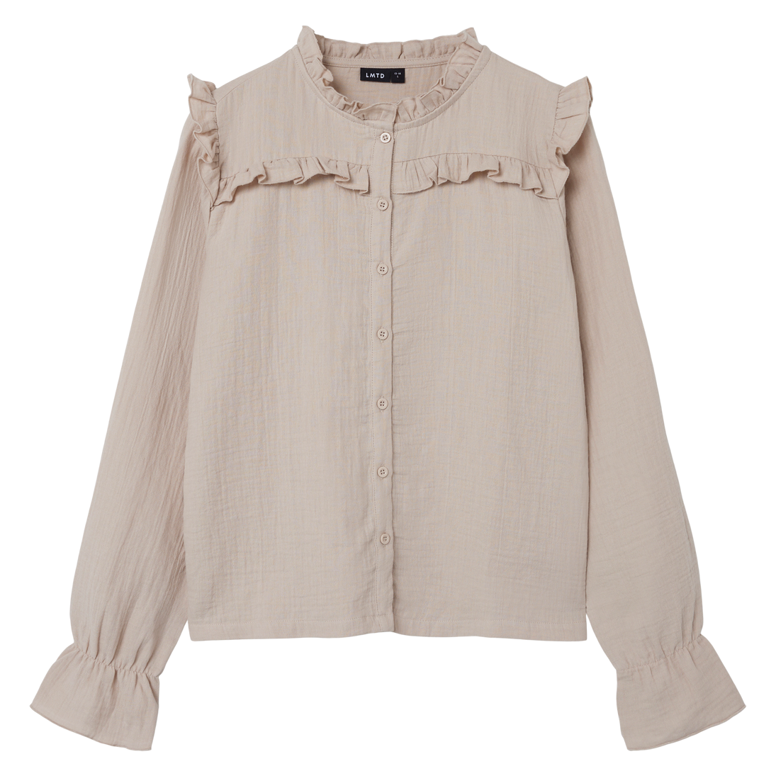 LMTD skjorte med lange ærmer og gennemgående knaplukning. Skjorten har flæsedetaljer på front og ved skulder og krave. Skjorten har en smal elastik ved håndleddet..