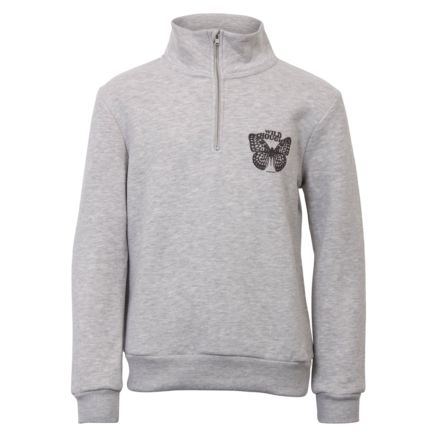 Halv-zip up sweatshirt med print af en sommerfugl samt teksten wild thoughts på for- og bagside..
