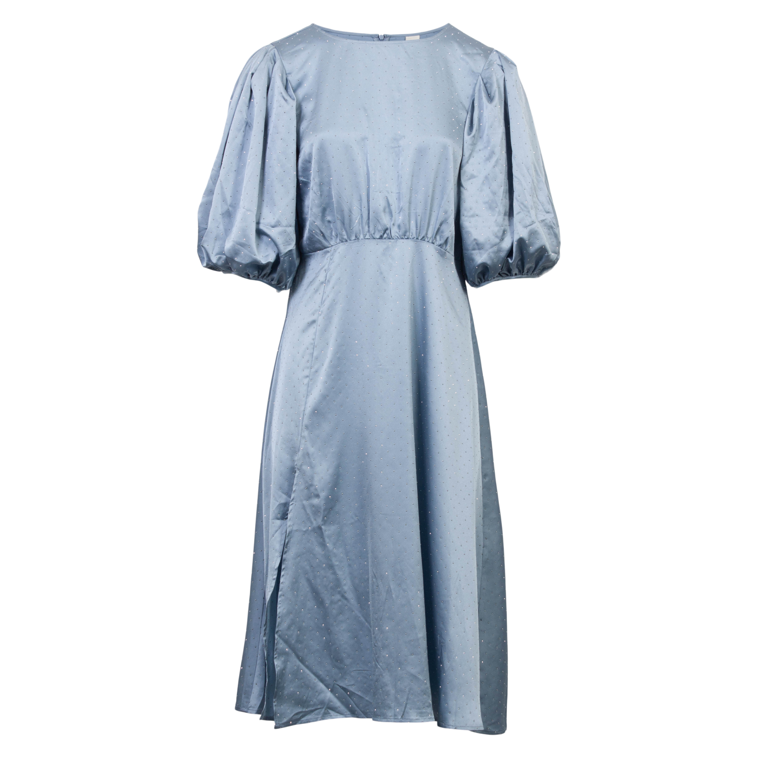 Loved By Lykke lang kjole med korte pufærmer. Kjolen har flotte rhinsten samt lynlåslukning på ryggen..
