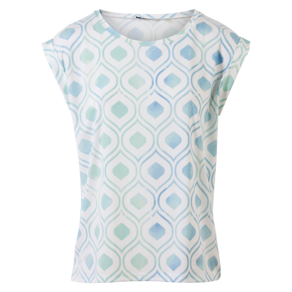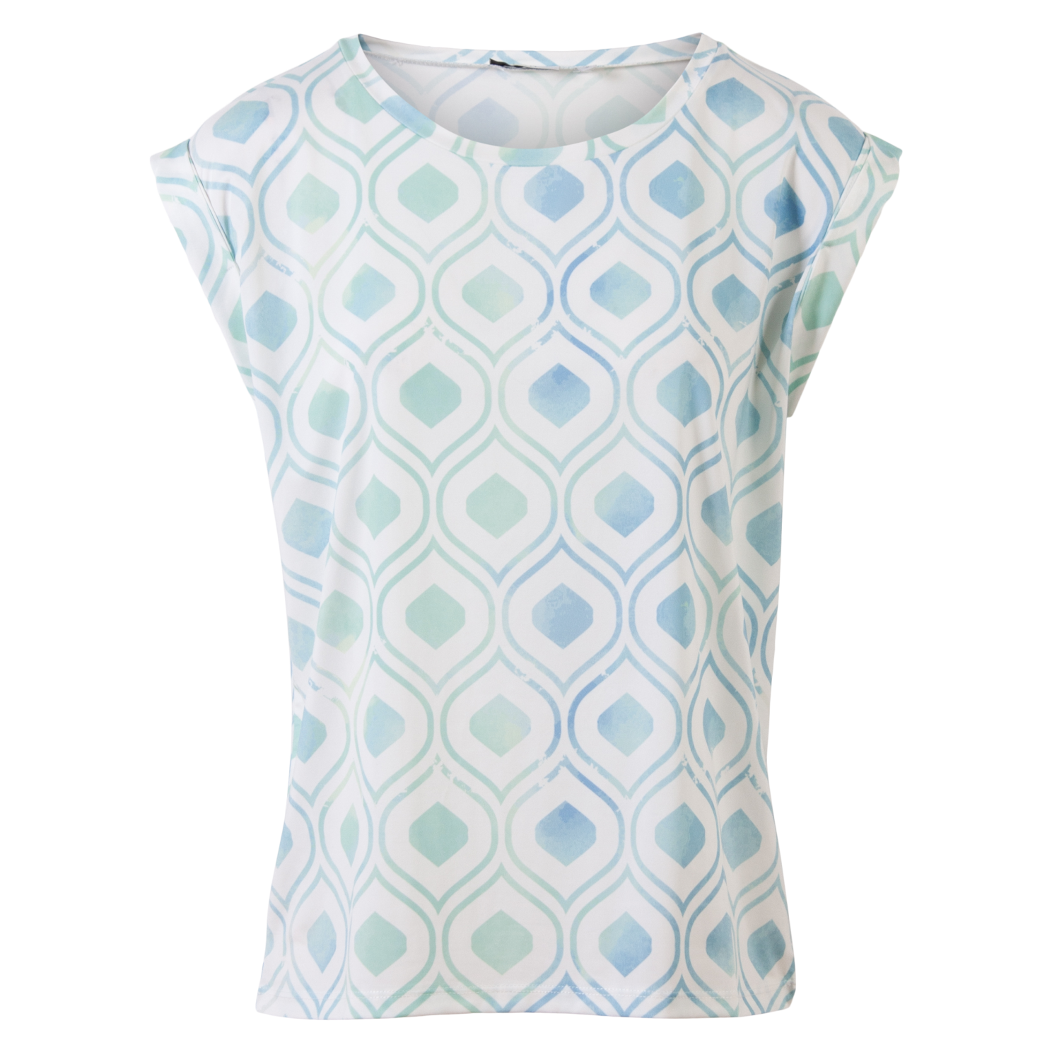 M.X.O bluse med ekstra korte ærmer, all-over print og rund halsudskæring..